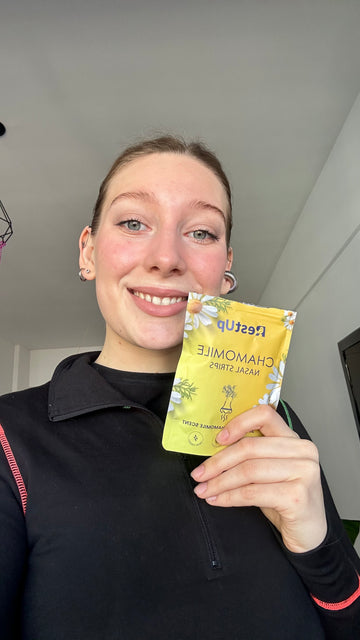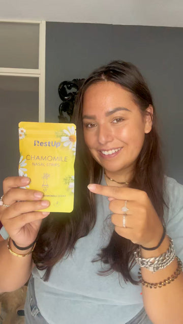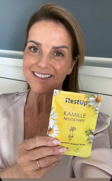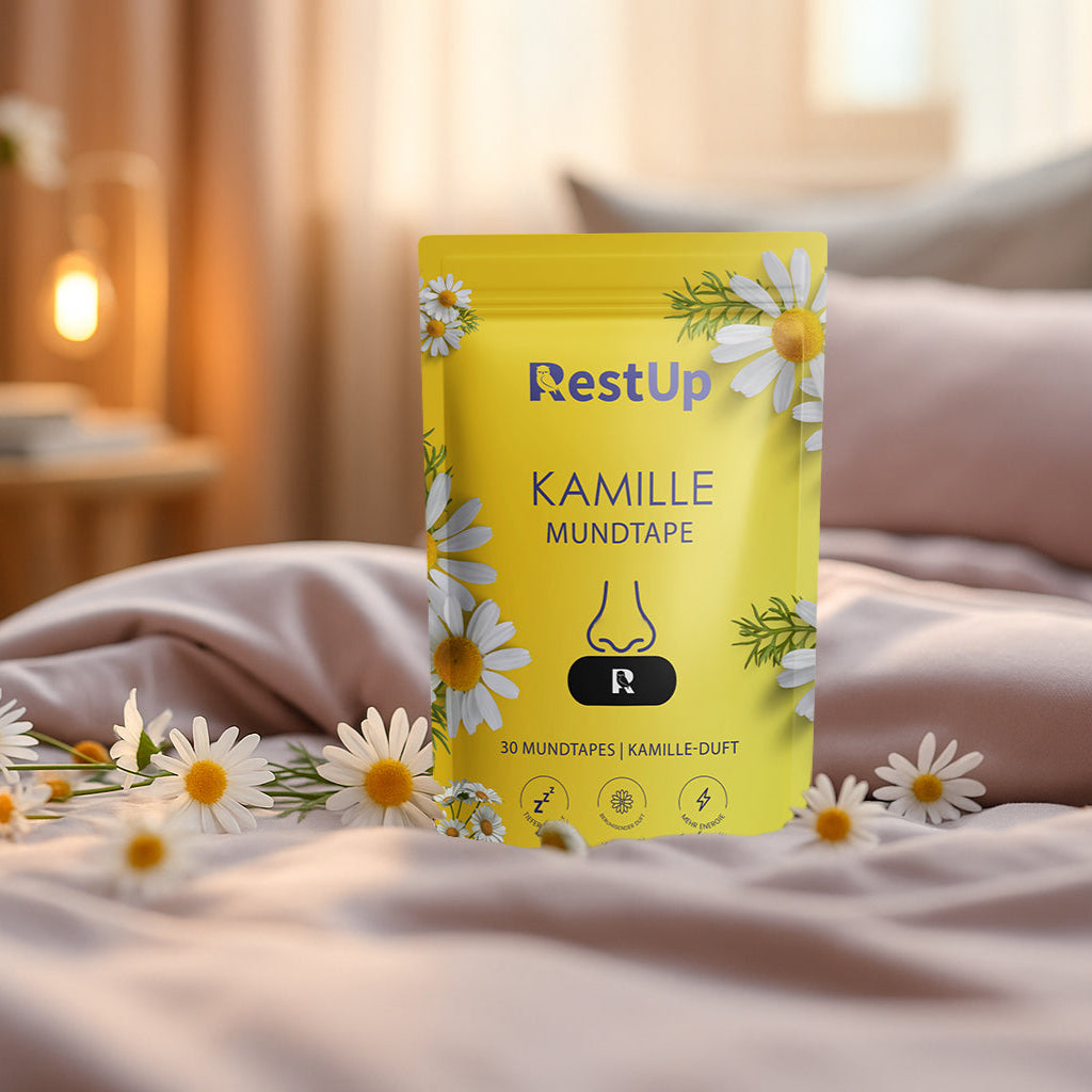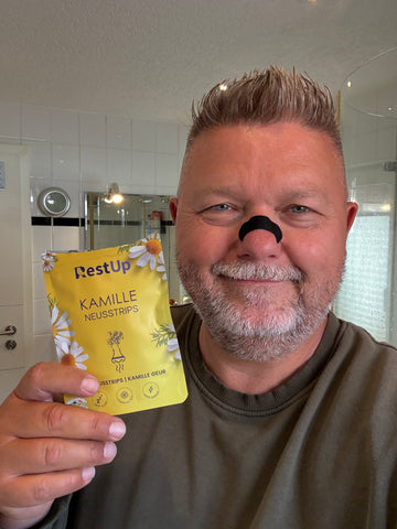 Sie schlafen schlechtt - und das liegt nicht an Ihrer Matratze oder Ihrem Kissen, sondern an Ihrer Atmung. Nachts entspannen sich Ihre Muskeln und Ihre Nase blockiert sich, Sie atmen durch den Mund, schnarchen und schlafen unruhig. RestUp öffnet Ihre Nase und beruhigt Ihren Körper mit Kamille. Für tiefen Schlaf, ohne Pillen oder Aufwand.